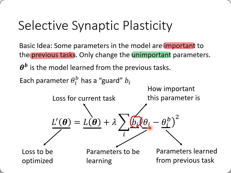 选择性的神经突触的可塑性?(Regularization-based Approach)