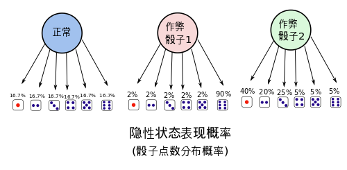 这次假定不同的骰子是用来作弊的,作弊者会根据情况来挑选骰子,这样转移概率就不可能是均等的了:
